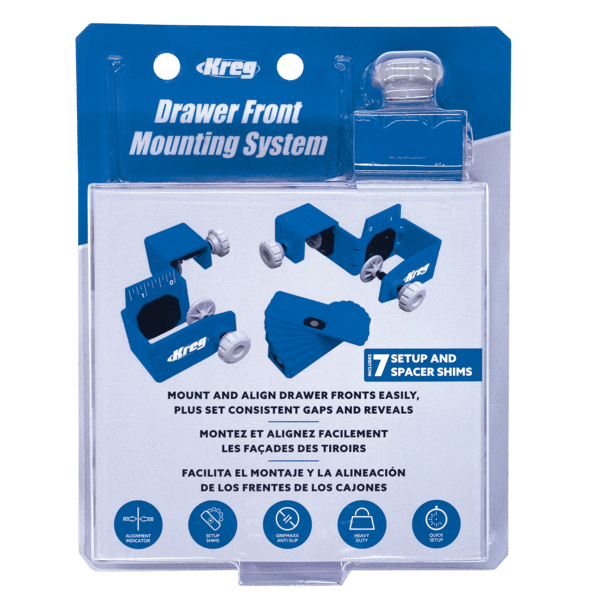 התקנה והזזת של חזית המגירות מעולם לא היו כל כך פשוטות ומדויקות. ג'יג התקנת חזית מגירה של Kreg מאפשרת להצמיד וליישר חזית מגירות במהירות ובקלות, ללא צורך להחזיק את החלקים ביד אחת בזמן העבודה. תכונות מתקדמות כמו GripMaxx™ למניעת החלקה, מבנה פלדה עבה עם פינות מחוזקות וידיות גדולות מאפשרות הידוק יציב ומדויק, גם בעבודה עם מגירות רחבות או פרויקטים כבדים. השימוש בשימס ייחודיים מבטיח מרווח אחיד בין המגירות ומראה מקצועי לכל פרויקט.